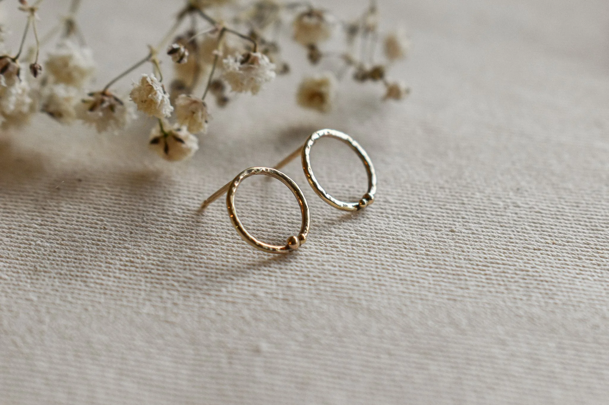 Puces d'oreilles - Cercles en or jaune - Effet martelé et billes